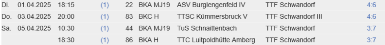 Die Herrren 5 mit 1:9 in Bruck und die Jugend 3 mit 2:8 in Schnaittenbach waren auf der Verliererstraße.